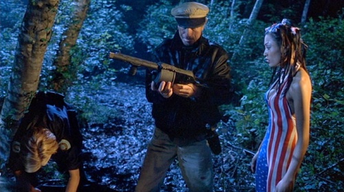 Alicia fights the final fight in some sort of leather skimpy corset. Liberty wears one of those 60’s american flag jump suits with some serious push up and there is a lot of boob in this movie. They are meant to look sexy and basadds, so most of the times girls wield Melee weapons.. just so the camera man can get away with some close up shots that follow the line of “hey my eyes are up here’. The cop named Carter (she is never given a first name in this movie) and captain Kirk..(yes thats what he is called) are the only two characters I remotely enjoyed. Unfortunately Kirk gets bitten and uses dynamite to blow himself up.. because dynamite is a weapon.. like shotguns and all .. it’s really not but they have tons of it in a weapons crate in this movie.