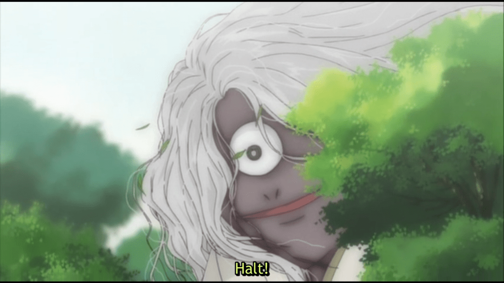 I do like the creature design a lot so far. Nyanko-Sensei in particular is adorable in his cat for and his dragonoid form or whatever that seems quit impressive. It reminds me a bit of that dog dragon from the NEver Ending Story..Falcor I think his name was.. just more Japanese. But I also like the witch and the smiling dude. I also like the sound design a lot, the cicada’s give the atmosphere a sense of serenity which helps sell the whole idea of Natsume living in a different world than us .. sort of speak as we see a tranquil world and his one is quite a bit more hectic. The voices are fun and I find them very fitting and I do look how things are framed. The way Nyanko-Sensei tumbles around.. but also the way how a punch to Nyanko from Natsume cuts away to a sound effect. From the position he was in.. there was no way to sell the effect visually I think.. yet this way I can suspend my disbelief easier. So it is nice to see that. The episode has a pretty good story to set things up but for now I can’t delve to deep in it.. I felt it had the perfect length and a satisfying conclusion showing us the fact that spirits can be appeased with their name.. or properly manhandled to be sent away. I like that.