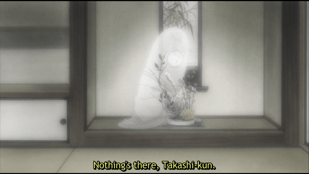 I have no strong negatives other than that, and even those are very excusable, I watched the show on Crunchyroll yet for some reason the quality was a bit low for me, it felt as if it was too “bright”. I am not sure yet if that is the anime’s age, it’s style.. or just a bad version uploaded on Crunchyroll.. but it felt a bit too “pastel” colour to me at times. Another nitpick I have is that we see a scene where two friends are strolling. They encounter Natsume and then continue to talk about how weird he is.. however the story is told from Natsume’s perspective.. while he is being chased.. yet for a brief moment we cut to their dialogue about him. That to me doesn’t fit…if we are being told things from Natusme’s perspective I would have preferred to let him thing “They must think I am super strange”.. and for the most part.. that’s how it is handled. That felt a bit too “in you face exposition” for my tastes. Not horrible.. but a bit inconsistent nonetheless.