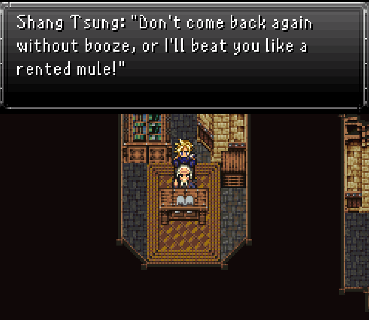 I am then quickly attacked by Ringo Starr. Had I told the five headed duck from earlier I thought Mr Dink was the fattest, he would have been in the restaurant instead. So from moments like these it is really shown that this game pushes rom-hacking to the limit. The fight is completely in Earthbound RPG style as well, so not only does the game now have branching paths based on choices you made.. it also features elements from other games! Something you don’t often see in Rom Hacks which is incredibly ingenious and only further contributes to the fever dream that is this game. Ringo is defeated by crying in front of him and then giving him 1 cent.. he got what he came for and he wishes me love and peace.. as he fades into thing air. In Earthbound style Sponge Levels up and learns Crying B.. a power that now makes sure he can cry with whatever power up he is using..even when tiny! Cool! But leveling up made Sponge hungry and on the table is a plate of spaghetti that Ringo left untouched…. of course that plate of spaghetti is the next stage……